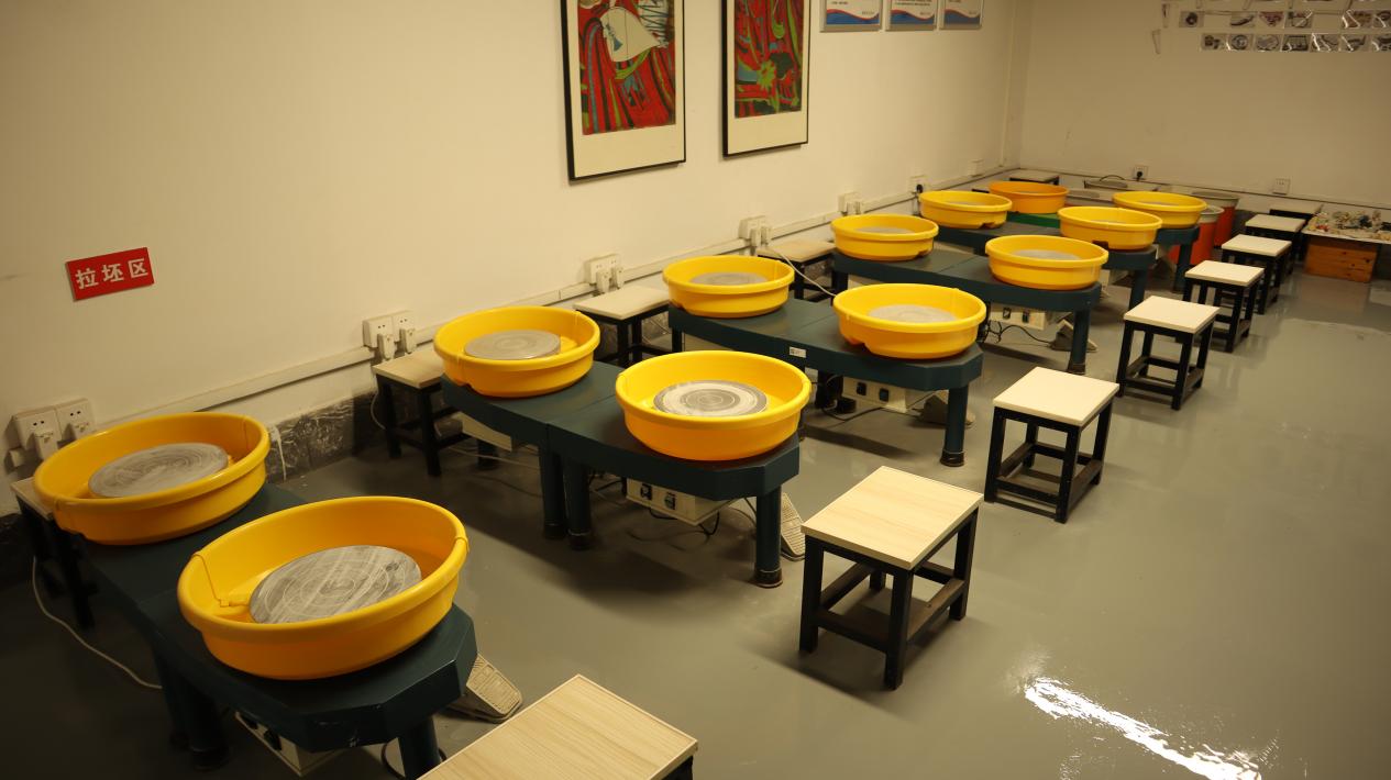 陶艺实训室为开放性实训室,主要服务于环境设计专业的《立体构成》《装饰基础》等课程的学生陶瓷类成果制作、拉胚、烧制、上釉等实践项目,也可承担大学生创新设计训练等。