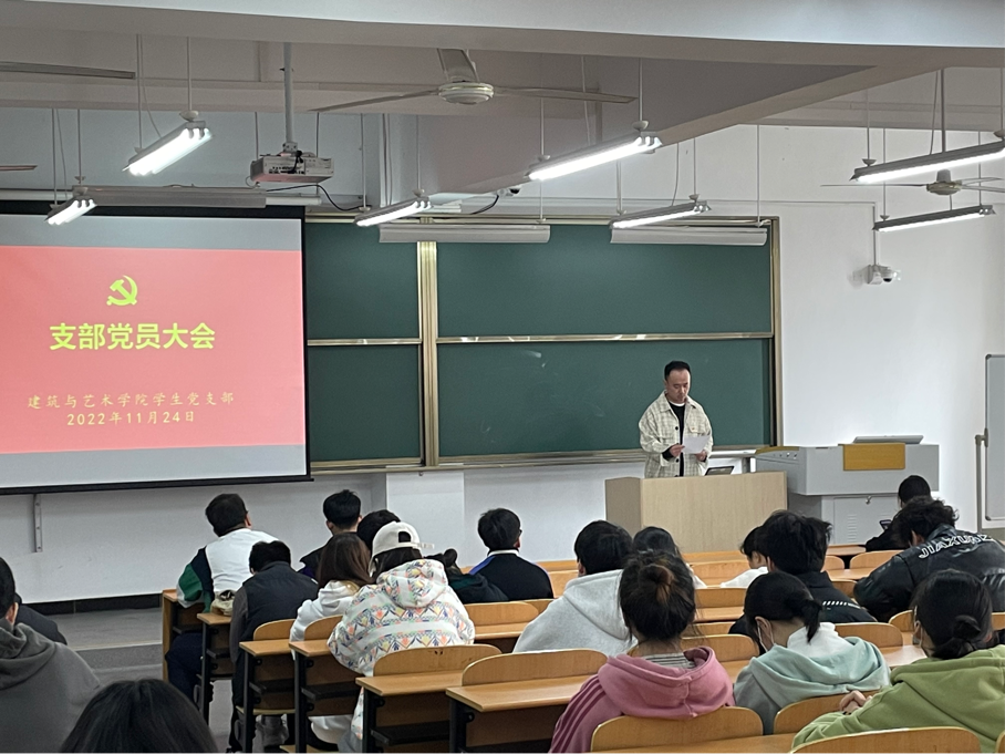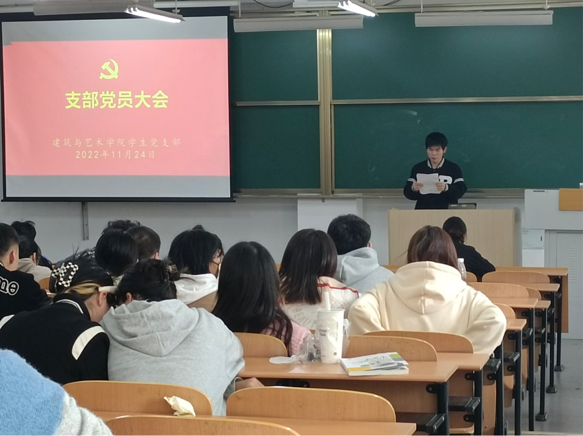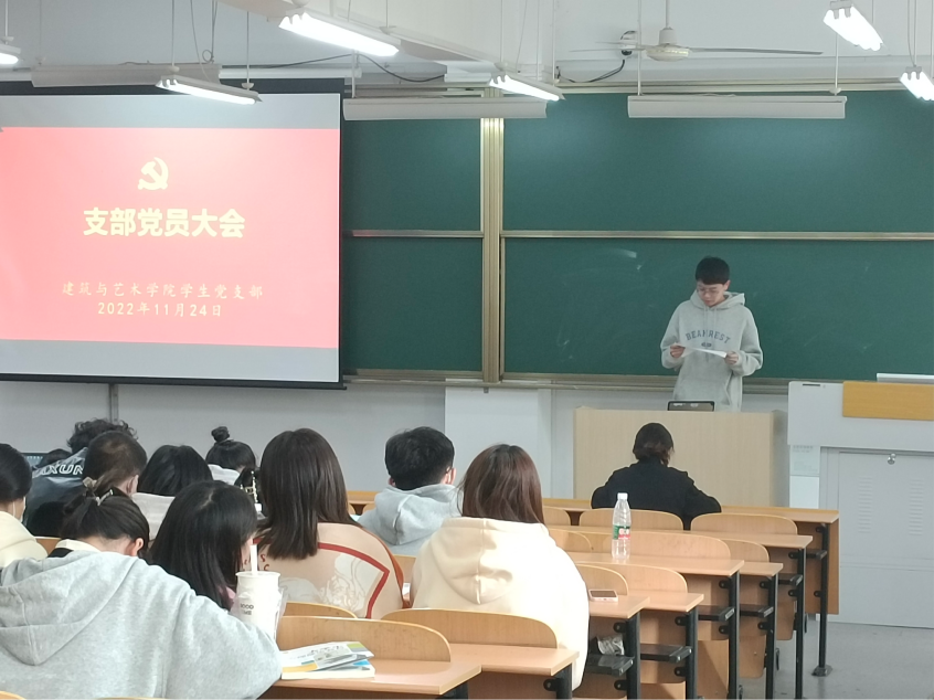 2022年11月24日中午十二点三十分,建筑与艺术学院学生党支部在西教109召开了预备党员接收及转正大会。学生第一支部书记陆帆主持本次会议,全体党员参加了此次大会。