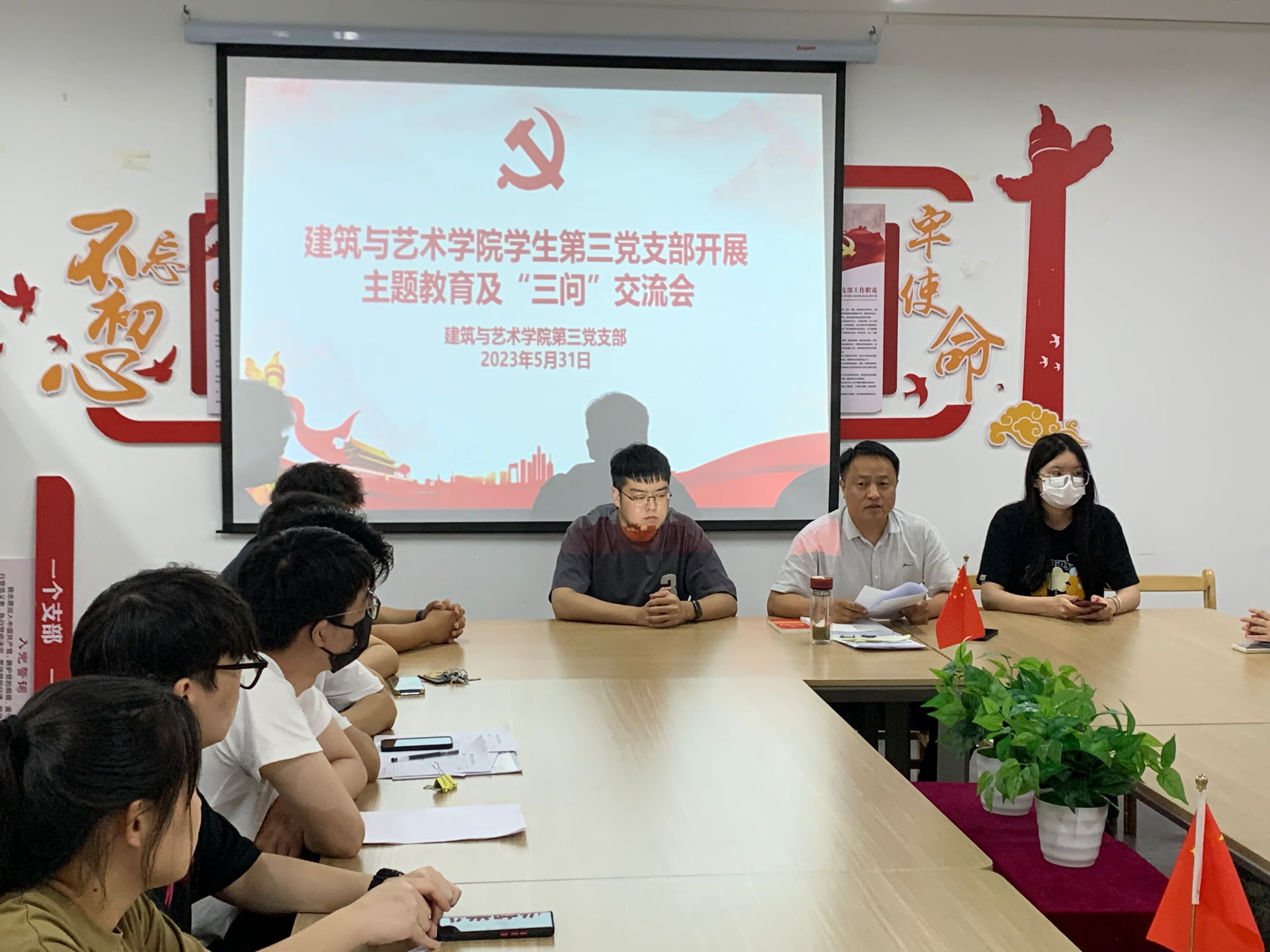 为深入推进做实学习贯彻习近平新时代中国特色社会主义思想主题教育,5月31日,建筑与艺术学院党支部召开学习贯彻习近平新时代中国特色社会主义思想主题教育学习会暨“三问”交流会,全体党员参加学习交流会,交流会由学生第三支部书记童锐主持。