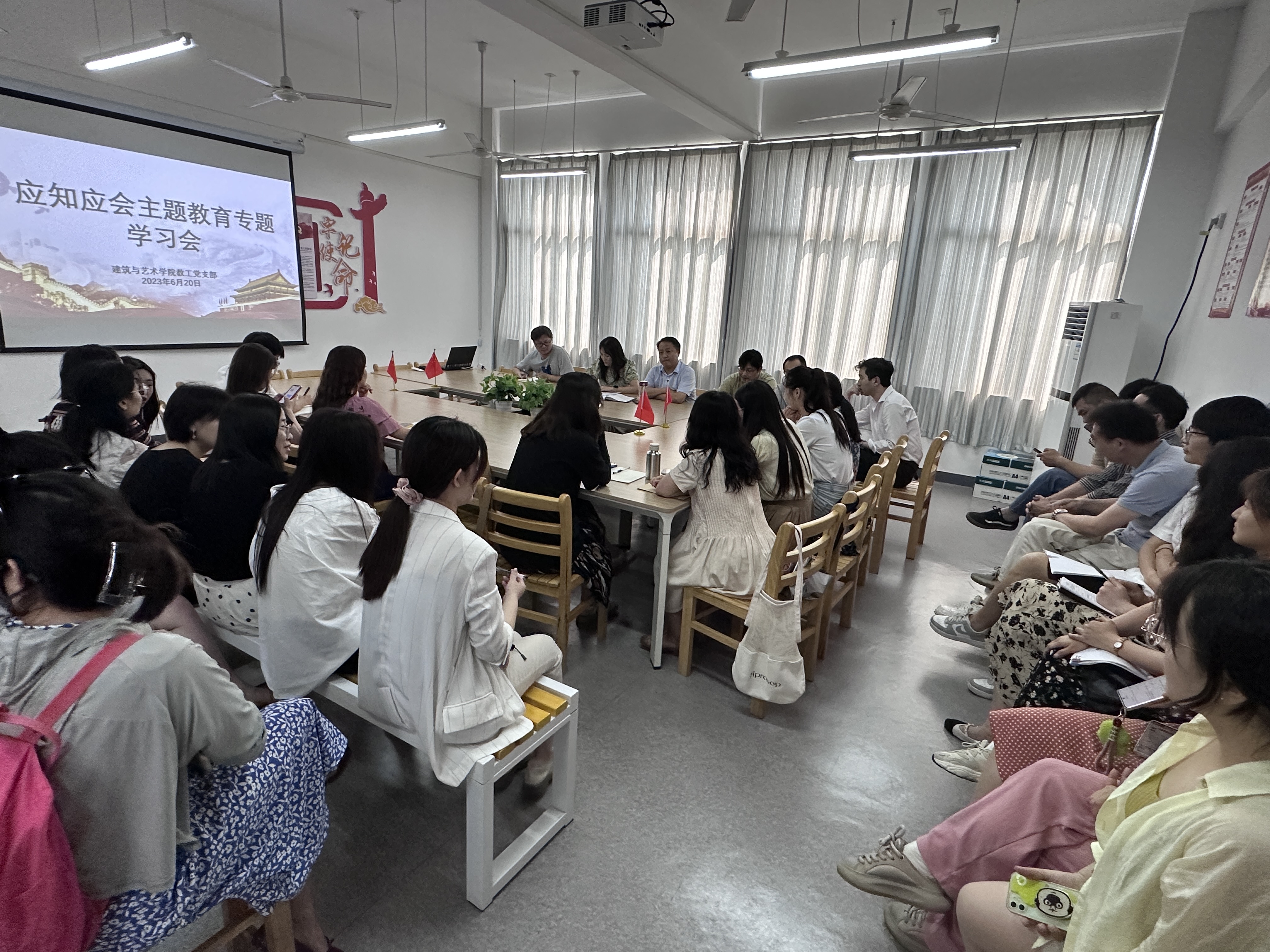 为推进学习贯彻习近平新时代中国特色社会主义思想主题教育深入开展,营造浓厚学习氛围,6月20日下午,建艺学院教工党支部召开"应知应会知识"专题学习会。