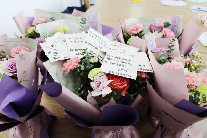 在这个特殊的日子里,不仅要向教师们致以崇高的敬意,更要用实际行动来感谢他们的付出。学生会的同学们做足了准备,为每位在校老师准备了精美贺卡和花束。
