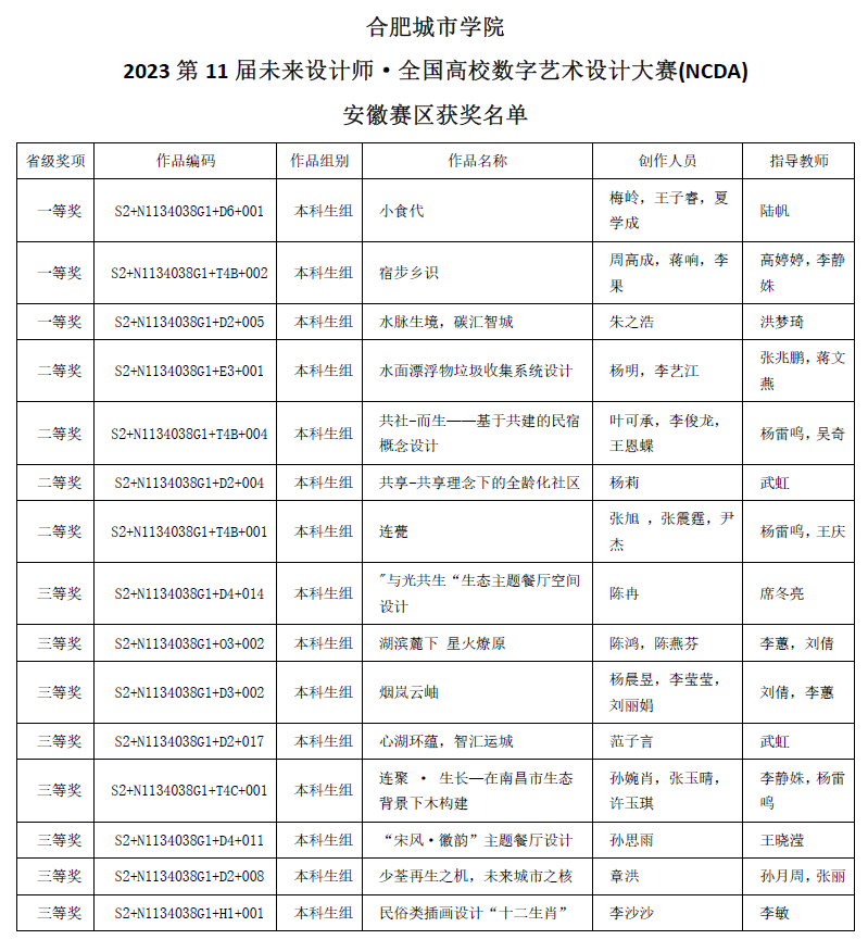 近日,第11届未来设计师•全国数字艺术设计大赛官方公布了省赛及国赛评审结果。我院参赛作品共获得15个奖项,其中一等奖3项,二等奖4项,三等奖8项。国赛中获得一等奖、二等奖各1项,相比往年有明显提升。