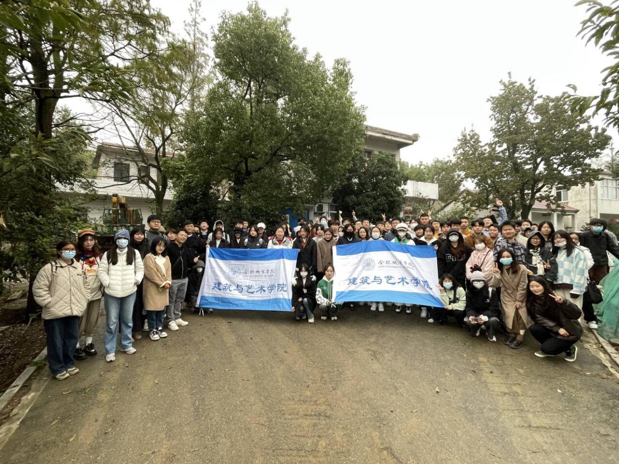 11月12日上午,由诸子诚、刘颖、韩璐、张剑兰等老师带领建筑学、城乡规划、风景园林、环境设计、视觉传达等专业的同学进行实地调研,本次各年级参赛代表共计110人参与本次现场调研。调研活动地点为安徽省合肥市庐江县冶父山镇冶父山社区东冲村,是第二届安徽省乡村振兴创新创业大赛定制赛的指定赛点村。本次调研活动是为了让参赛的同学们对设计基地拥有深入的了解。在出发前,每一位同学都满怀期待,干劲十足。