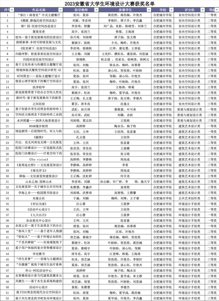 2023安徽省大学生环境设计大赛获奖名单