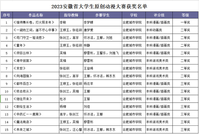 2023安徽省大学生原创动漫大赛获奖名单