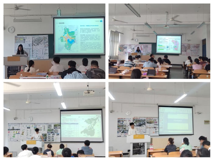 答辩现场同学们分别使用了A0展板,成果册和PPT等多种形式对各自毕业设计成果进行了汇报,详细的介绍了各自毕业设计的亮点、对政策的解读以及对方案的分析。汇报内容涵盖了课题研究意义、内容分析、设计思路等多个方面,同时结合所选课题的地域资料,如人口数量、经济发展、产业结构等,进行了深入的分析和论证。