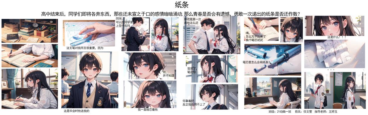为贯彻星空在线注册(中国)官方网站-注册登录“以创新引领发展”的教育理念,充分发挥AIGC技术在动画专业中的发展,本学期动画专业开设了AIGC辅助设计(动画)这一门课程,课程由动画专业负责人王婷玉老师进行授课。课程通过AI软件技术和艺术审美两个方面进行结合。为了结合动画专业的特色,整个作品涵盖了角色设计、场景设计、漫画故事、故事版、创意构思、课程设计和软件技术的融合等多个领域。经过近两月的课程学习,全面展现了学生们对AIGC技术在漫画绘本创作中的广泛应用与探索。
