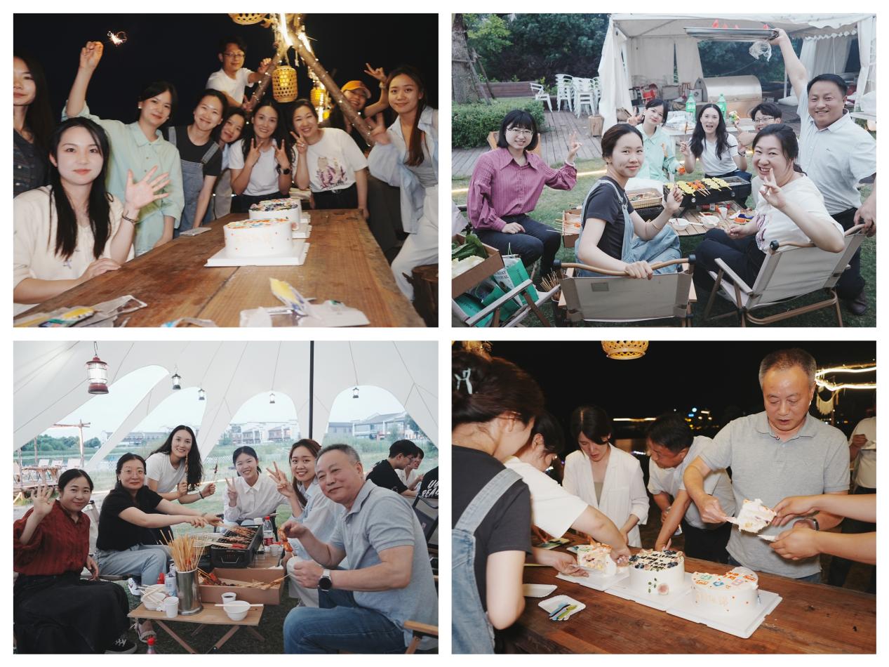 游戏结束后,大家迫不及待的架起烤架烤炉,此时经过各种调料腌制的羊肉串、大虾、鸡翅、烤鱼、烤肠等食物纷纷上桌,被大家拿到烤架上开始烤制,真是芳香四溢,令人垂涎欲滴。团建活动包括唱歌、掼蛋、篝火晚会等娱乐环节,加强了同事之间的沟通交流与合作,展现了教师们的才艺,陶冶大家的情操。大家在一片欢声笑语中,活动圆满结束。学院为大家准备了精美的小礼品,精心准备了生日蛋糕和生日祝福,给大家带来意想不到的惊喜,将本次团建活动气氛推向了高潮。