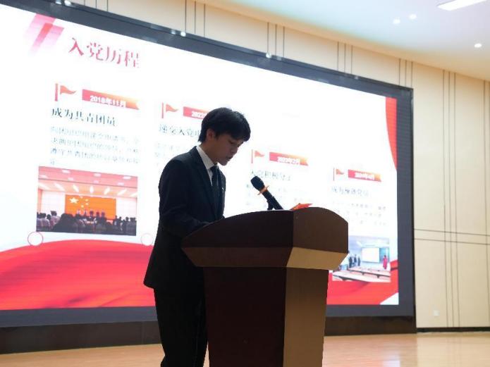 第一部分是党员风采展示。经过学生支部初选,共有6位学生党员进入决赛。参赛选手通过PPT演讲,分别从思想、学习、工作和生活等方面展现新时代大学生党员的使命和担当。经过激烈角逐,由学生一支部选送的胡溢同学荣获一等奖,一支部和三支部选送的腾忠旭和吴梦阳荣获二等奖,二支部和三支部选送的汪于琪、韩雪和佘文生荣获三等奖。