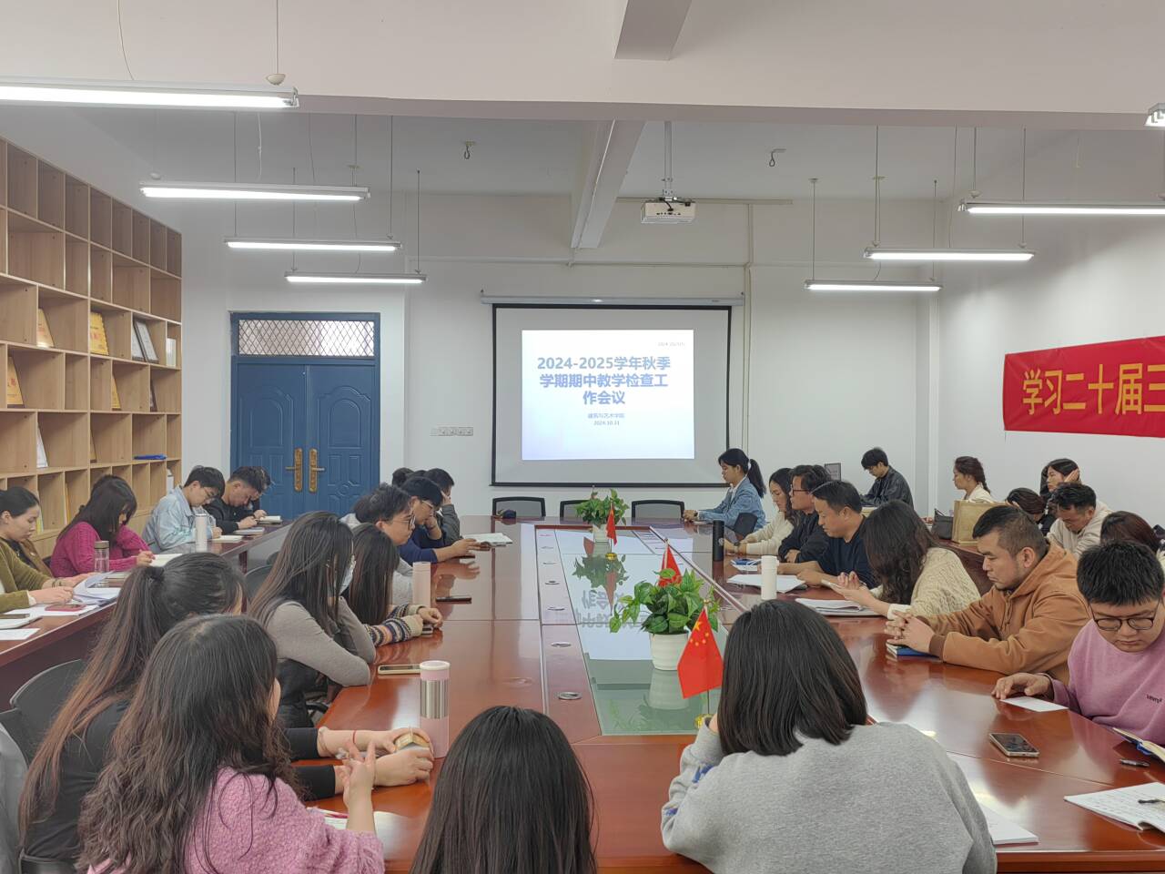 为进一步提升教学质量,确保教学常规工作的规范化与细致化实施,建筑与艺术学院于10月31日下午在西教三楼会议室召开了2024-2025学年第一学期期中教学检查工作布置会议。会议由教学院长助理王庆主持,学院领导班子全体成员及全体教师出席了会议。