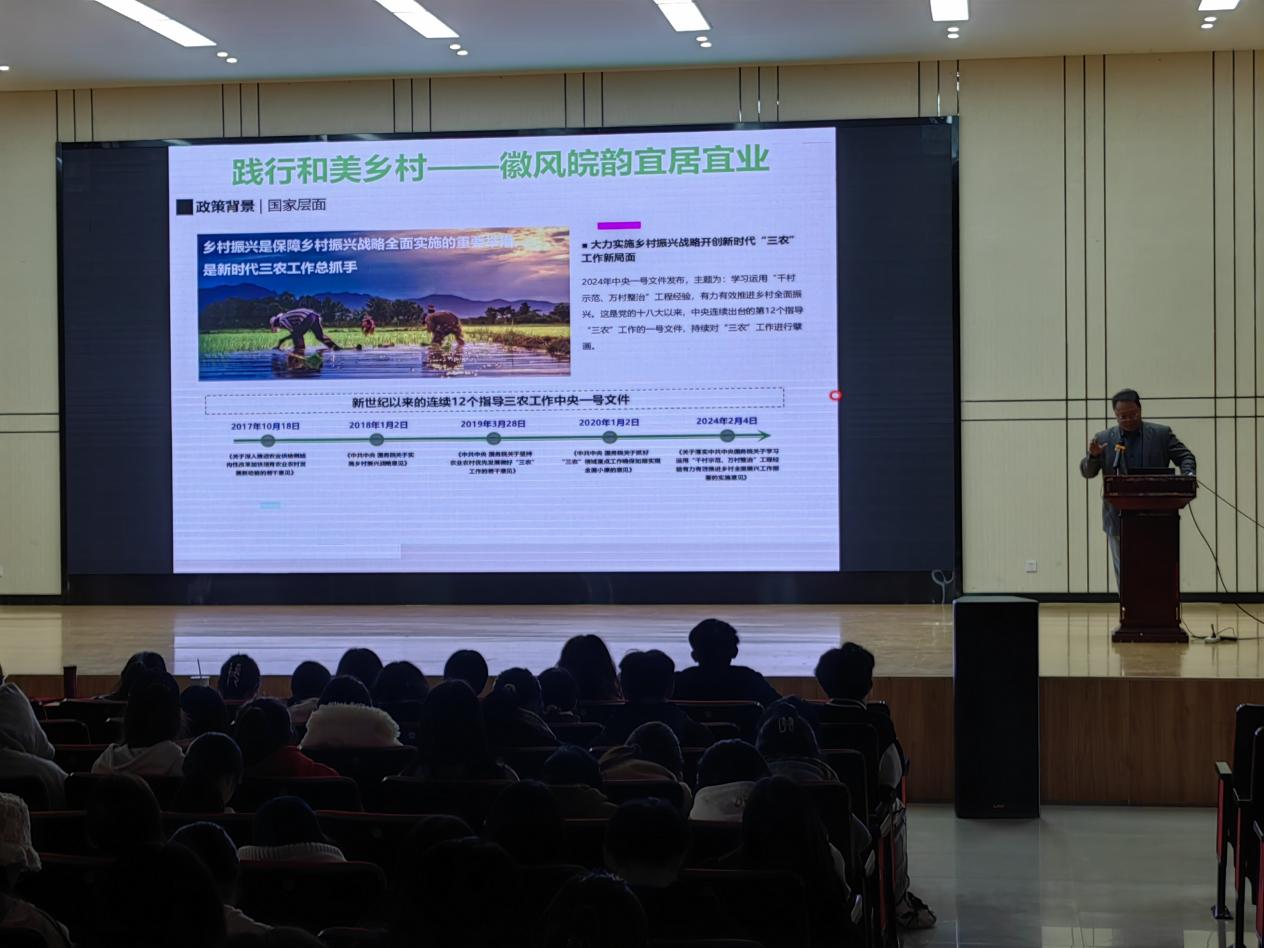 随后,冀教授将话题转向了“和美乡村”。他强调,和美乡村建设是美丽中国建设的重要组成部分,是实现乡村振兴的重要途径。他提到,近年来,国家出台了一系列政策和文件,指导和推动和美乡村建设的深入发展。我国和美乡村建设取得了显著成效,涌现出了一批生态环境优美、产业特色鲜明、社会和谐稳定的美丽乡村。这些村庄通过挖掘自身资源优势,发展特色产业,加强生态环境保护,实现了经济、社会和生态效益的协调发展。
