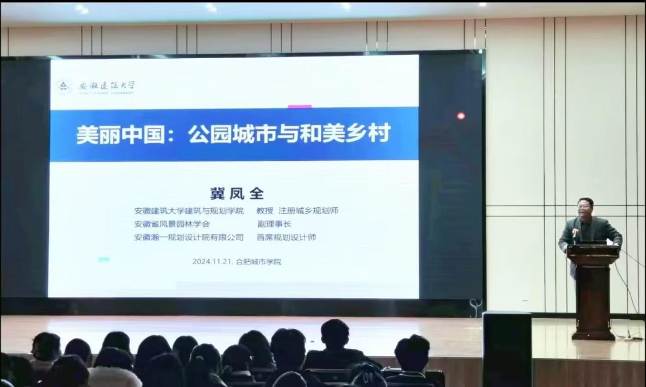 11月21日下午,建筑与艺术学院在图书馆二楼报告厅成功举办了“美丽中国:公园城市与和美乡村”学术讲座。本次讲座由安徽建筑大学建筑与规划学院教授冀凤全主讲,吸引了学院众多师生的积极参与。