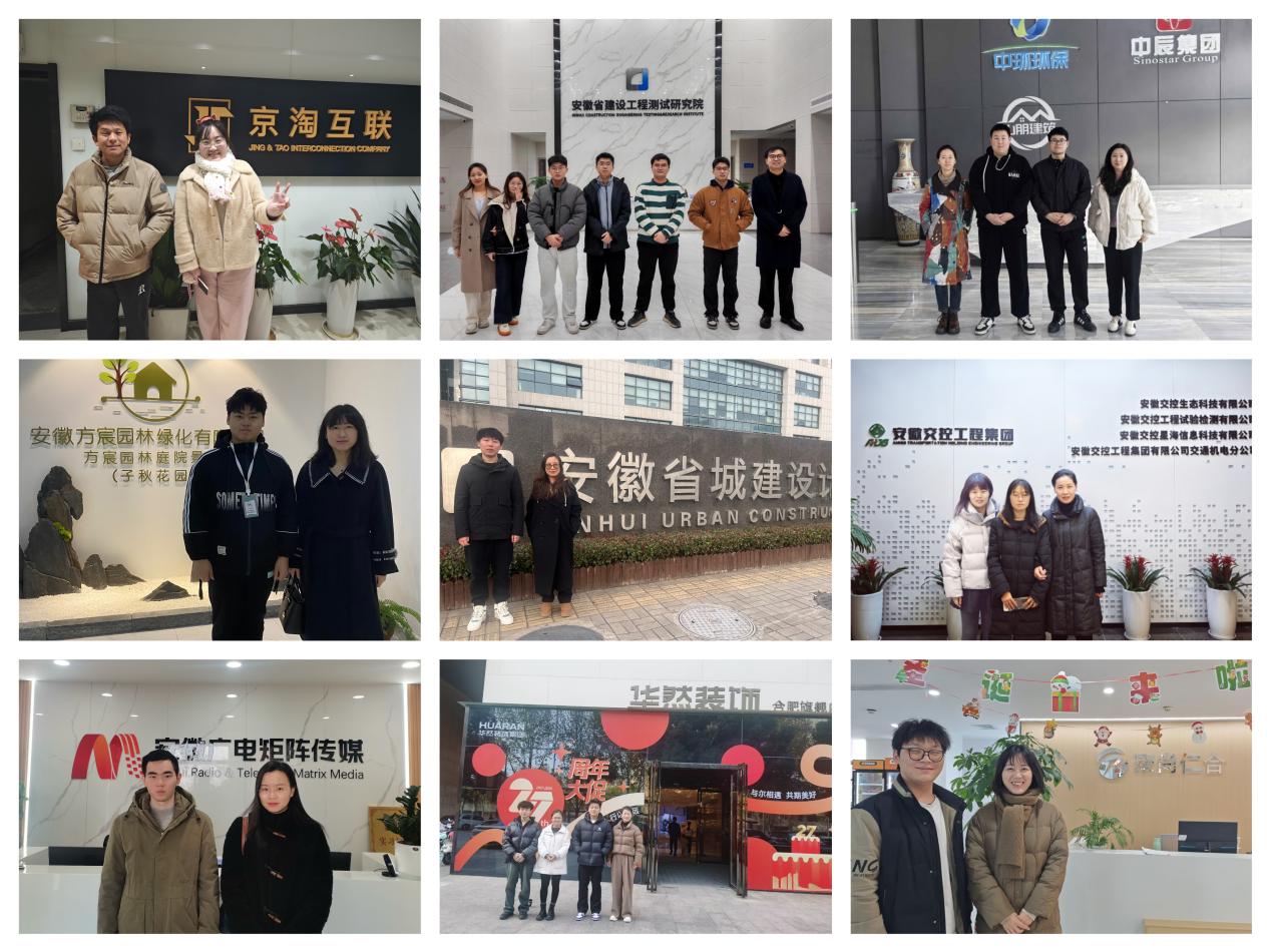 回访活动由各教研室主任及骨干教师积极参与,分别前往安徽省内外多家知名企业,包括安徽省建设工程测试研究院、安徽城建设计研究总院、安徽方宸园林绿化有限公司、合肥五维建筑规划设计有限公司、华然装饰集团、科大讯飞股份有限公司、安徽广电矩阵传媒科技有限公司、安徽万朗磁塑股份有限公司等近30家用人单位。