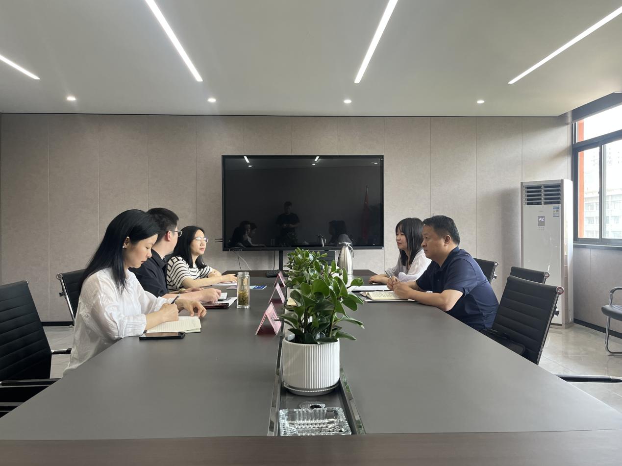安徽广电矩阵传媒有限公司董事长朱小勇、人事部负责人赵萍萍对童锐一行的到来表示热烈欢迎,并详细介绍了企业在业内所取的成果。童锐对安徽广电矩阵在数字媒体领域的行业影响力及创新实践成果表示高度认可。他指出,此次合作是学院深化“校企协同育人”战略的重要举措,旨在通过搭建实习实训平台,打通学生从课堂到职场的“最后一公里”,助力学生提升专业技能与职业素养,同时为企业输送高素质、适配性强的专业人才。视觉传达专业教师赵青就推动教学内容与产业需求精准对接方面进行了交流。