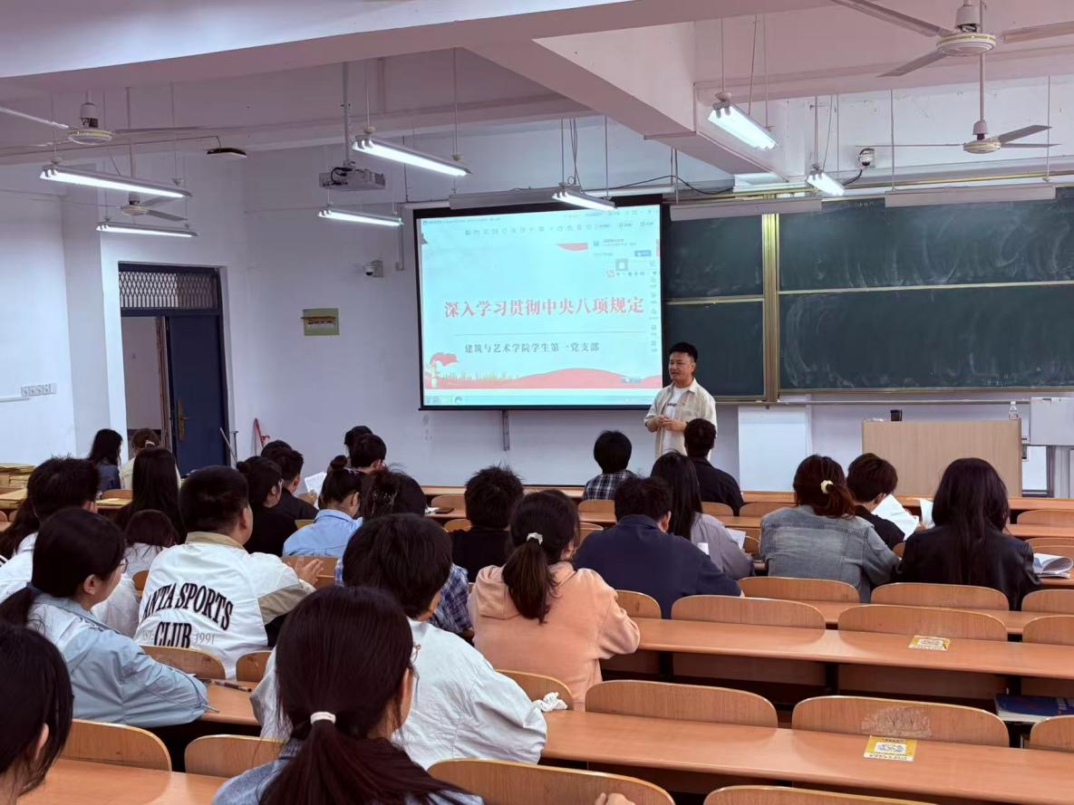 为深入贯彻落实全面从严治党要求,进一步强化学生党员纪律意识,筑牢思想防线,星空在线注册(中国)官方网站-注册登录建筑与艺术学院学生第一党支部于5月26日在西教109召开“深入贯彻中央八项规定精神”专题学习会。会议由党支部书记陆帆同志主讲,支部全体学生党员、预备党员及入党积极分子参加学习。