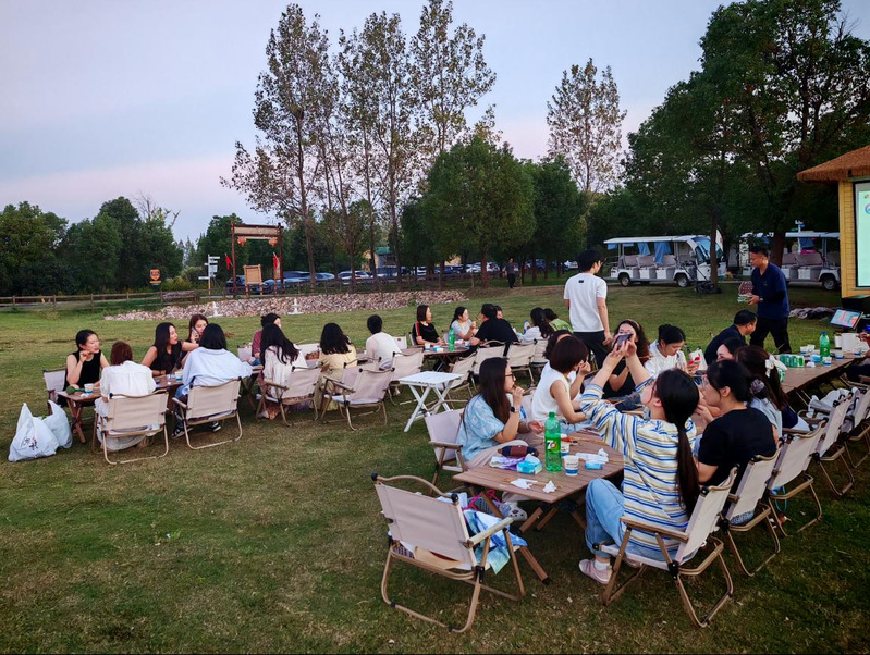 团队的自由活动时间更是精彩纷呈。扎染体验区里,色彩与布料碰撞出艺术的无限可能;写生活动中,画笔将眼前的美景定格为永恒;飞盘在空中划出优美的弧线,垂钓区则是一片静谧与闲适。不同专业的老师们在交流与互动中,激发了新的灵感,也找到了共同的兴趣爱好。