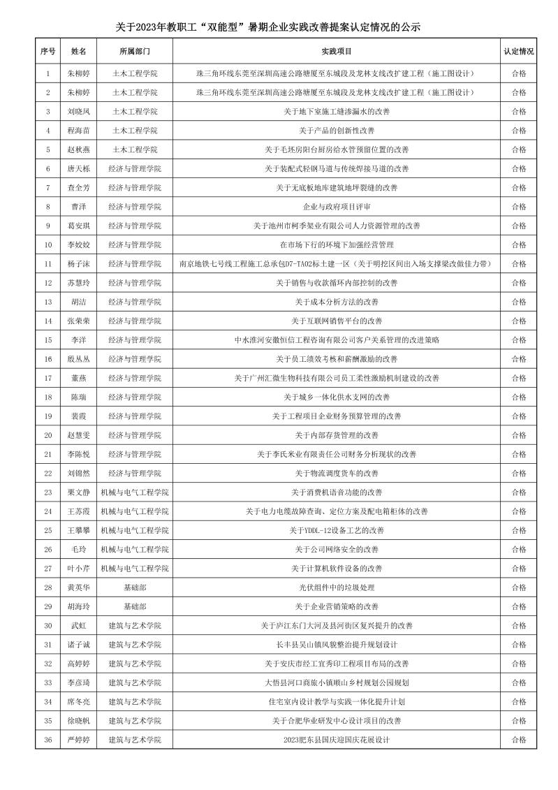 自组织2023年度教职工“双能型”暑期企业实践改善提案征集工作以来,科技处共收到42份有效材料。经校外专家的逐一评审,总共有35位教师的提案材料通过,合格率为85%。