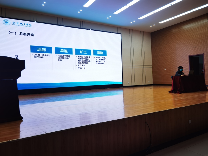 下午3时,由人事处副主任科员于淼老师进行有关人事主要管理制度的解读,主要涉及师德师风建设、考勤管理、试用期考核管理、专业技术资格申报等管理办法。内容丰富,涵盖面广,让新教工对人事制度有更深入的了解和未来职业发展规划更加清晰,对规范教职工行为,提高教职工责任感、使命感和荣誉感意义重大。