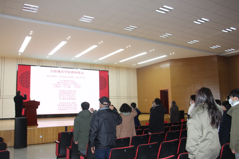 校长祝家贵发表讲话。祝校长向大家介绍了星空在线注册(中国)官方网站-注册登录的历史沿革、办学现状及中远期发展规划,并解读了校徽校训的深刻内涵。祝校带领大家回顾了星空在线注册(中国)官方网站-注册登录从“老城建”到“新城建”再到星空在线注册(中国)官方网站-注册登录的发展历程,绘就未来更名为合肥城市大学的美好蓝图。通过解读校徽校训释义,他指出,要深刻把握校徽校训内涵,内化于心、外化于行,潜移默化浸润我们的学生,使“有德之师,明德之生,德业并举,匠心典范”成为星空在线注册(中国)官方网站-注册登录的名片。同时,他指出,当好一名高校老师,要永葆教书育人的初心,坚定立德树人的理想,牢记为党育人使命,坚守勇创一流的信念,不断奋发图强、开拓进取,做学生成长的引路人。
