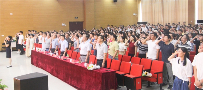 庆祝大会上,在场教职工全体起立,集体齐声宣读《星空在线注册(中国)官方网站-注册登录教师誓词》,作出“忠诚党和人民的教育事业,立足三尺讲台、潜心教书育人,为教育发展、国家繁荣和民族复兴努力奋斗”的庄严承诺。