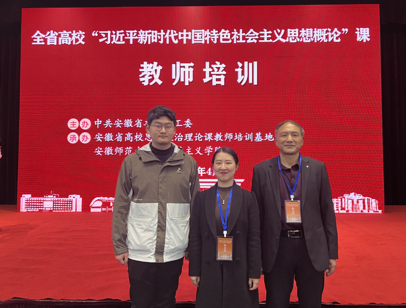 3月31日-4月3日,由安徽省委教育工委主办、安徽师范大学承办的2023安徽省高校“习近平新时代中国特色社会主义思想概论“课教师培训在芜湖顺利举办。根据工作安排,马克思主义学院教师孙玉清、杨瑞铭,任课教师黄晶莹参加了此次培训。