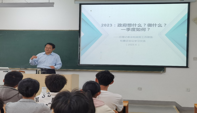 5月12日上午10点,在滨湖校区南教205教室,副校长马建国为22级无机非金属材料专业学生讲授《形势与政策》课。本次《形势与政策》课程以《2023:政府想什么?做什么?一季度如何?》为主题,从“想什么?——重点把握三个方面”、“做什么?——重点抓好十个方面工作”、“一季度做的如何?”三个方面对今年的政府工作报告、未来政府目标和做法进行了讲授。马建国的讲授深入浅出,和同学们互动探讨,课堂气氛活跃,教室内不时响起热烈的掌声。