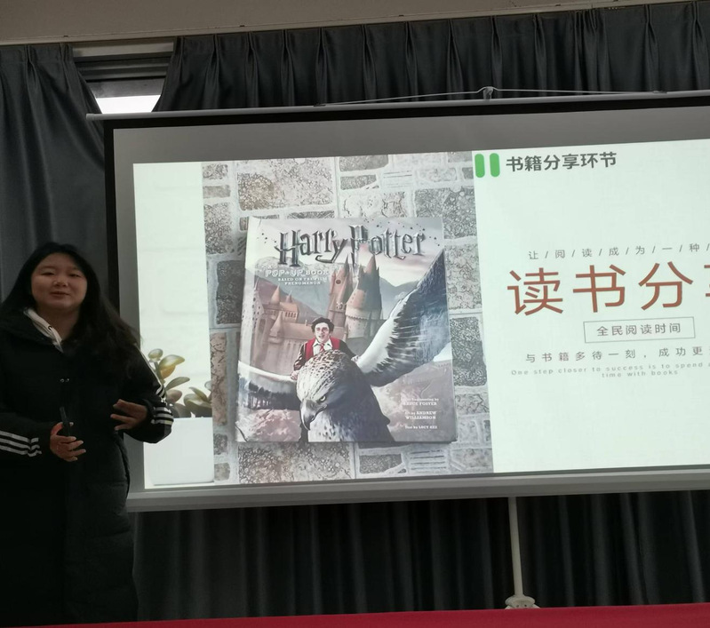范春雨带来的是英国作家J.K.罗琳作品《哈利波特》。她分享到:人总是在时光中迎来蜕变,又从蜕变中得到成长,哈利的成长给了他直面伏地魔的勇气,让她知道无论前方要走的路有多么艰难,都要无所畏惧的前行下去,书中的一幕幕为我们展现了一场惊天动地的大战,也传递给了世界所有人那不应舍弃的人类特质——爱与勇气。