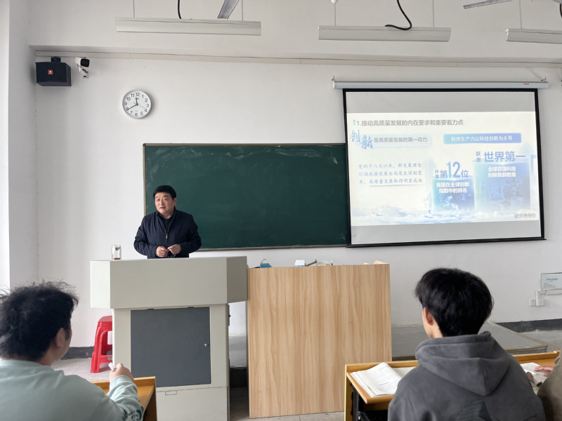 11月12日及11月14日上午,校长祝家贵亲临学生课堂,开展了两场生动的思政课,主题为“加快发展新质生产力”。这一场特别的授课旨在引领学生们深入思考,了解新质生产力的创新主导作用,认识到发展新质生产力是推动高质量发展的内在要求和重要着力点,不断推动新质生产力加快发展。