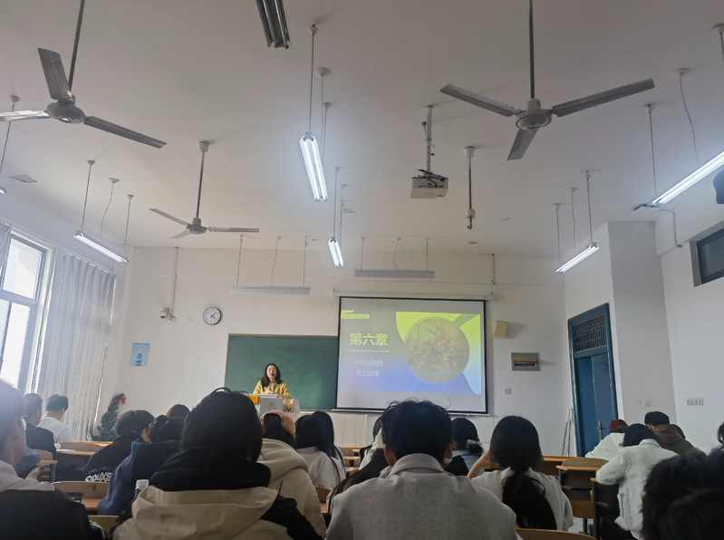 4月14日,在陈啸吟教授的公开课上,她通过历史逻辑讲明人民共和国的创建和共产党执政地位的确立是历史和人民的选择,重点回应学生的理论困惑和思想迷茫,加强思想引导和理论辨析,让学生深刻认识国民党是如何陷入全民的包围中以及没有共产党就没有新中国。