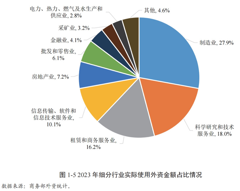 中国吸引外资的规模和行业覆盖:中国作为全球第二大经济体,拥有庞大的市场和完善的产业链,为外资企业提供了广阔发展空间。截至2024年底,中国新设立外资企业近6万家,同比增长9.9%,吸引外资规模近5000亿元人民币,仍处于近十年高位。外商累计在华投资设立企业超过123.9万家,实际使用外资20.6万亿元。改革开放40多年来,外资在华投资覆盖20个行业门类、115个大类,制造业领域涉及31个大类、548个小类,充分展现了中国产业优势和市场吸引力。