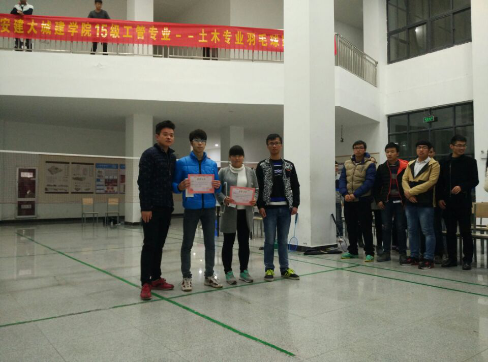 本次15级土木工管羽毛球联赛圆满结束,土木系男单屈局第三,工管系男单包揽第一、二名,但女单方面土木系包揽第一、二名,工管列第三,可谓平分秋色,不分伯仲。当然“友谊第一,比赛第二”,通过本次比赛提高了同学们的身体素质和团队凝聚力,更重要的是增进了大家的友谊。
