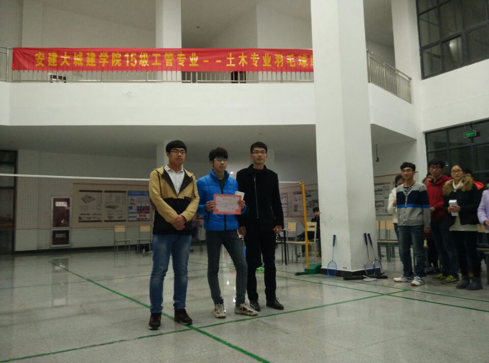 为了丰富大学生的课余生活,增进我校各系的联谊交流活动,12月10日,由安建大城建学院羽毛球社主办的15级土木工管羽毛球赛在我校图书馆一楼羽毛球场馆举行。