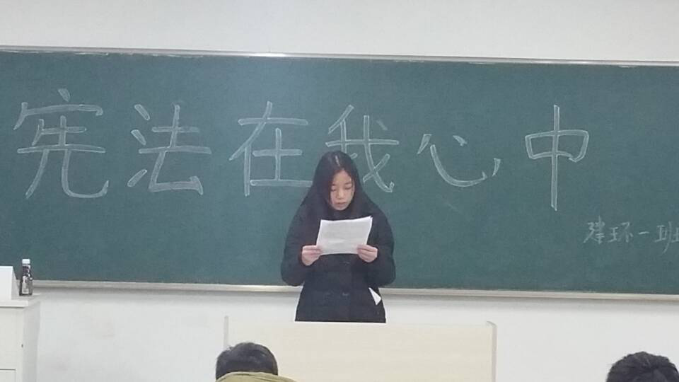 12月17日,晚上7点,我班于304教室展开“宪法在我心中”主题班会。为了使同学们更好的了解宪法的重要性质,班会中主要通过讨论宪法知识、分析典型案例来增强大家对宪法的了解,并且挑选了很多有关宪法的题让同学们进行抢答,以便让同学们对此有更深入的了解,并产生主动去了解宪法的动力。