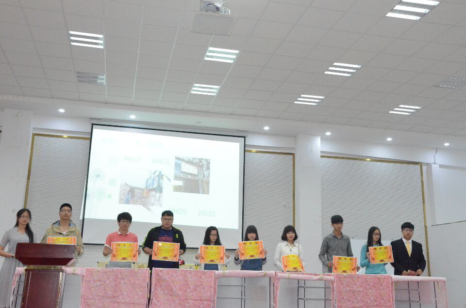 图为由土木系主席王沛东及其搭档陈彩虹为获奖宿舍代表颁奖