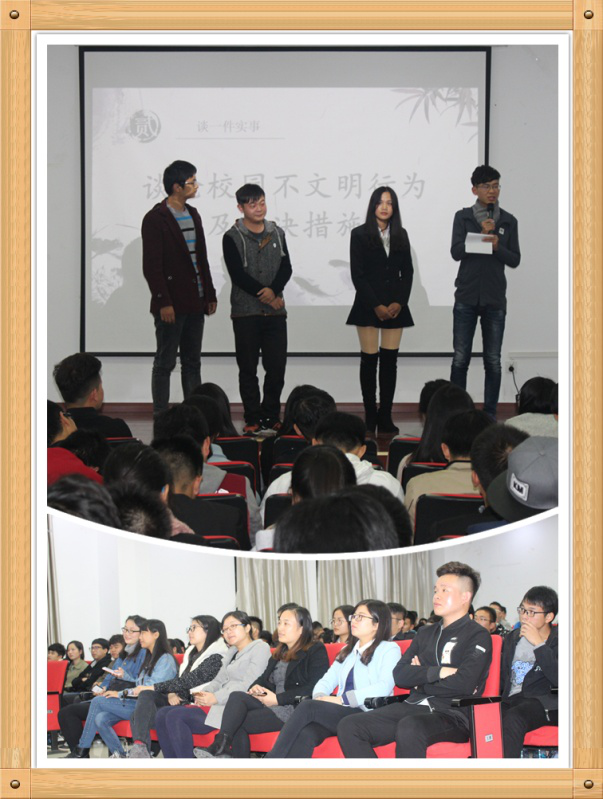 左传有云;礼,经国家,定社稷,序民人,利后嗣,无论对于个人,学院,甚至国家,道德之力无所不及,道德讲堂致力于营造学院‘学礼’氛围,相信通过这份努力,一个更好的城建正在由我们每一位师生所缔造!