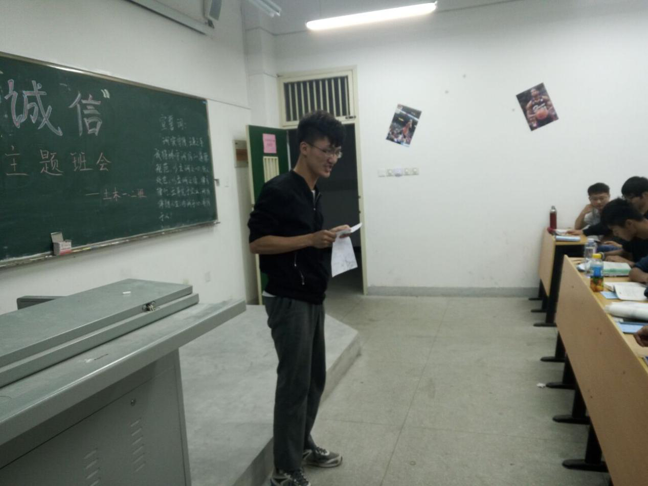 5月23日晚,土木工程1班在晚自习教室举办了以“诚实守信”为主题的主题班会。旨在倡导学生树立诚实守信的良好品质, 在生活中诚信为本,以致诚之心,待人处事,为当代大学生树立良好的价值观。