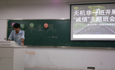 2016年5月29日晚自习,15级土木工程系无机非金属材料工程专业1班的全体同学在103教室举办了关于“诚信”的主题班会。此次班会旨在提倡同学们树立诚信的良好品质,在生活中坚持“诚信为本”,养成讲诚信的好习惯。特别是在接下来的期末考试中,诚信参考尤为重要。