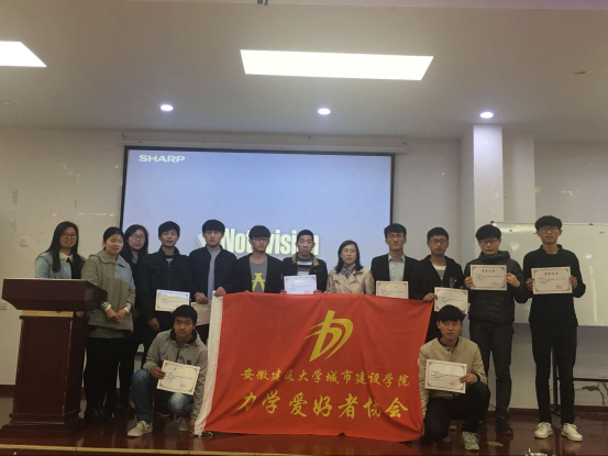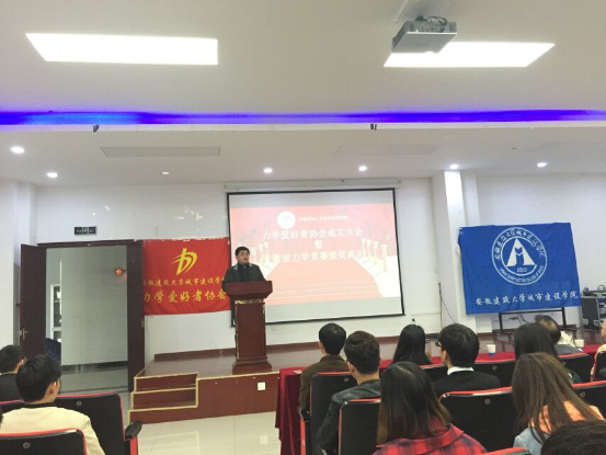 大会伊始,土木系主任邵艳老师宣布力学爱好者协会正式成立,并且作出了慷慨激昂的阵词,她提出了对力学爱好者协会的要求和期望,并衷心祝贺在力学竞赛中获奖的同学。接着由力学爱好者协会会长做出了精彩的发言,他主要围绕力学协会成立的宗旨为内容,对力学协会的内部组成做了阐述,并突出了力学的重要性,以及代表力学协会全体成员感谢院领导、老师们对力学协会成立的支持。