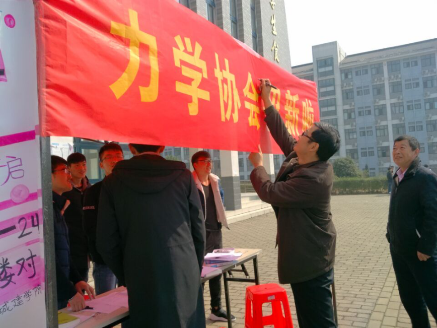 力学爱好者协会能够为同学们提供接触力学竞赛的机会,为以后同学们参加力学竞赛积累经验,增强同学们对力学的重视以及学习力学的兴趣。为了营造更好地力学学术氛围,促进学生从本科阶段就开始了解和接触提高水平的力学前沿研究,力学爱好者协会组织了这次招新工作。2017年2月27日十点左右招新的工作准备就绪,开始了为期两天的招新活动。力学协会里的干事们激情澎湃的迎接着每一位前来报名的同学,为不懂的同学解疑答惑。我院领导和协会的干事们都为协会注入新活力而感到无比欣喜。