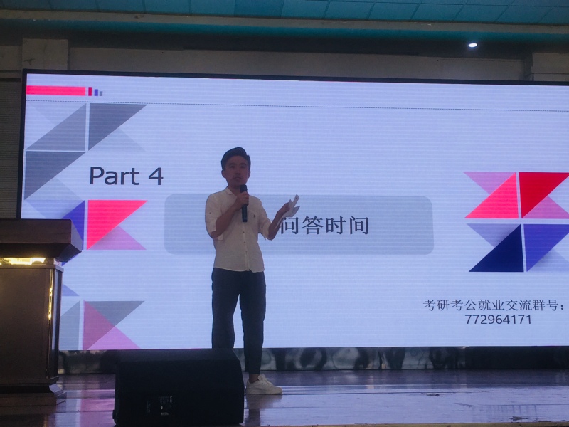 14水务工程专业魏飞学长在国考中以第一名的成绩被浙江省杭州市余杭区林业水利局录取。在分享会上,魏飞对公务员的性质进行了说明:“公务员本质是一个服务性职业,摆正心态很重要。”他重点讲了自己备考公务员的过程,结合自己的实际情况和兴趣给自己定下了奋斗目标:成为一名公务员。于是大三时学长调查了自己专业可报考的部门,并为之努力。尽管公考的压力很大,但他没有放弃,一直为此努力着。正如魏飞学长说的那样“越努力越幸运”,当你努力到一定程度时,你的运气也就自然而然来了。