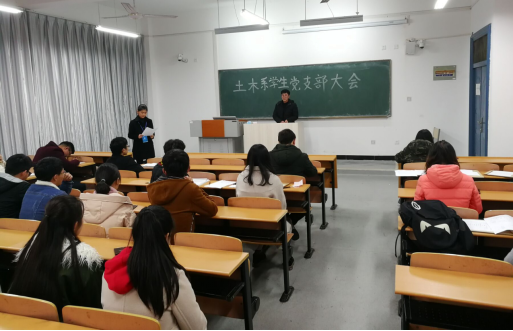 12月5日,安徽建筑大学城市建设学院土木工程系学生党支部在南教103教室举行了预备党员转正大会,讨论张超等12名预备党员同志转正事宜。大会由土木工程系学生党支部书记张敬知主持。
