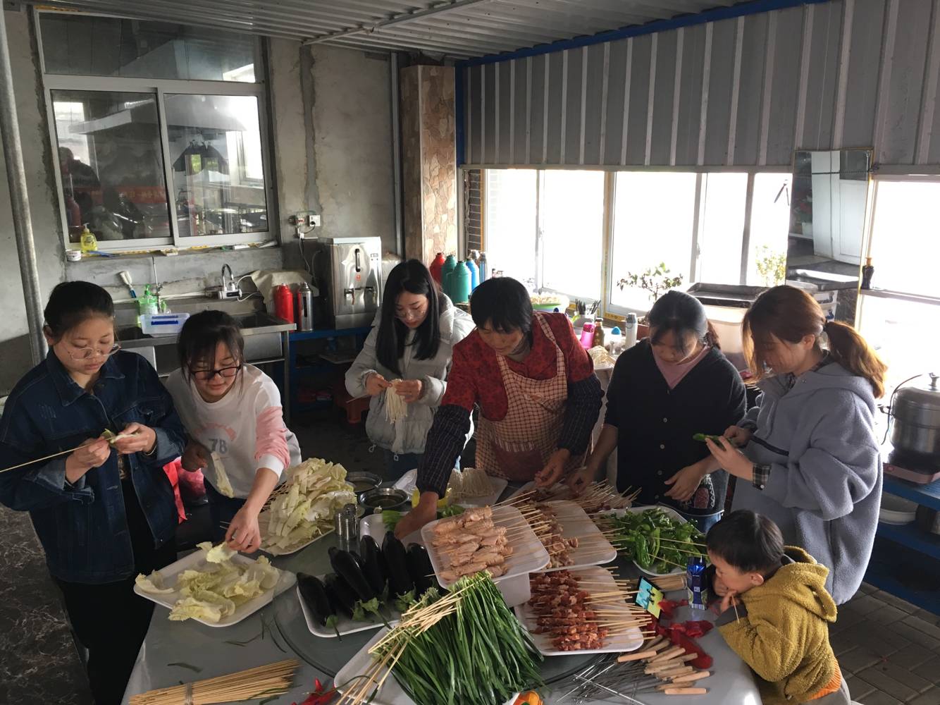看着他们一个个发出欢快的笑声,想着今天一定会是最开心的一天。不久,就开始准备起烧烤的食材来,因为烧烤的食物都是新鲜采摘的食材,农家乐的人手也不足,可能会耽误时间,所以几位同学自告奋勇去帮忙,很快食物都串好了。肉类有羊肉串、五花肉串、鸡翅串、鱼串里、脆骨串等,菜类有韭菜、年糕、金针菇、臭豆腐、青椒、土豆、白菜等。
