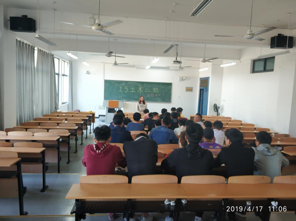 2019年4月17日上午11:00,15级土木工程系土木工程专业2班在南教104召开了以“青春不散,前程似锦”为主题的班会。