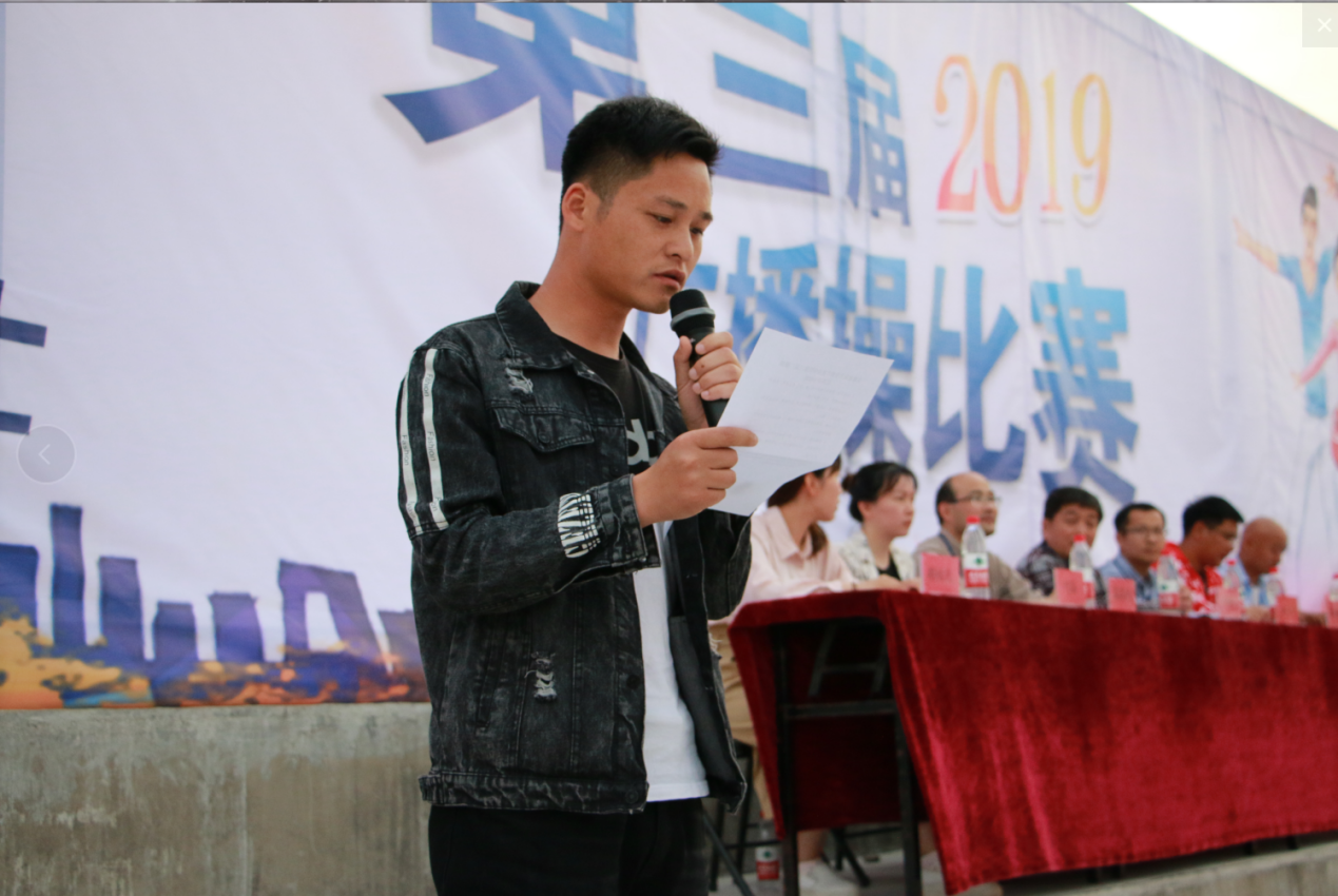 比赛开始主持人开幕致辞,接着黄家星老师上台讲解比赛规则。随着主持人宣布大赛开始,同学们精神抖擞,昂首阔步迈着整齐的步伐踏进主席台前,在指定位置进行比赛。各个专业身着整齐划一的服装,动作规范整齐,井然有序。同学们热情高涨,精神饱满,充满朝气和活力,每个动作都力求完美站队迅速、做操动作规范、到位,步伐一致,动作整齐划一,展现着同学们团结一致、奋发向上的精神。