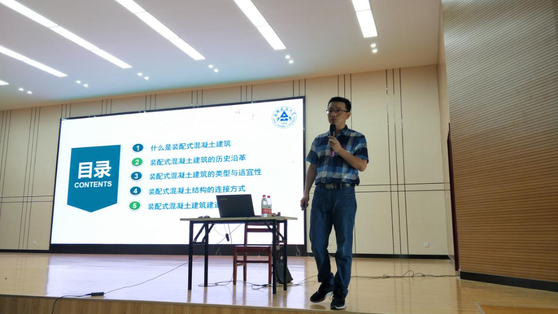 2019年7月2日上午10点,由土木工程系主办的主题为“装配式混凝土建筑简介”讲座在图书馆二楼报告厅举行,邀请安徽建筑大学刘运林教授担任主讲人,土木工程系主任邵艳,教学主任助理周海玲,土木工程专业教研室教师、道路桥梁与渡河工程专业教研室教师,17级、18级土木工程专业和道路桥梁与渡河工程专业全体学生到场参加讲座。