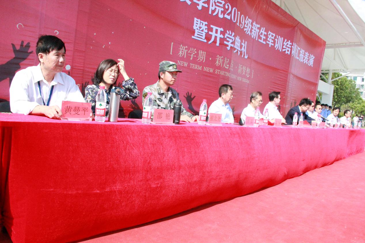 当总教官发出已准备就绪的口号后,田园副院长宣布安徽建筑大学城市建设学院2019级新生军训结训汇报表演暨开学典礼正式开始。全场所有的人起立,庄严地面向国旗行注目礼并奏唱国歌,这是一个重要的时刻,也是作为中华儿女最骄傲的时刻。