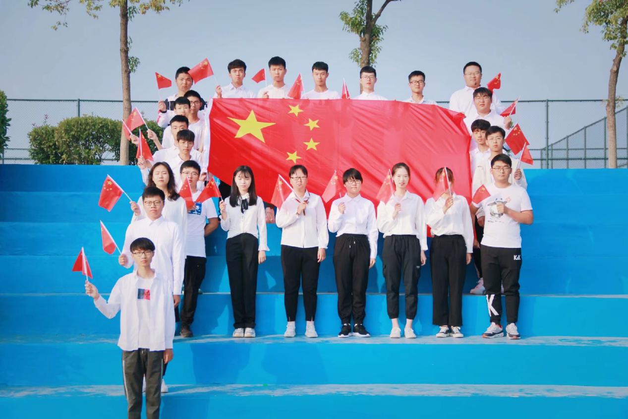 校园各处,大家有举着五星红旗摆出“70”字样,还有的摆出旗杆的形状,用各种各样的图形表达了对祖国最诚挚的热爱。同学们嘴上洋溢着幸福的笑容,心田饱含着热爱的情怀。