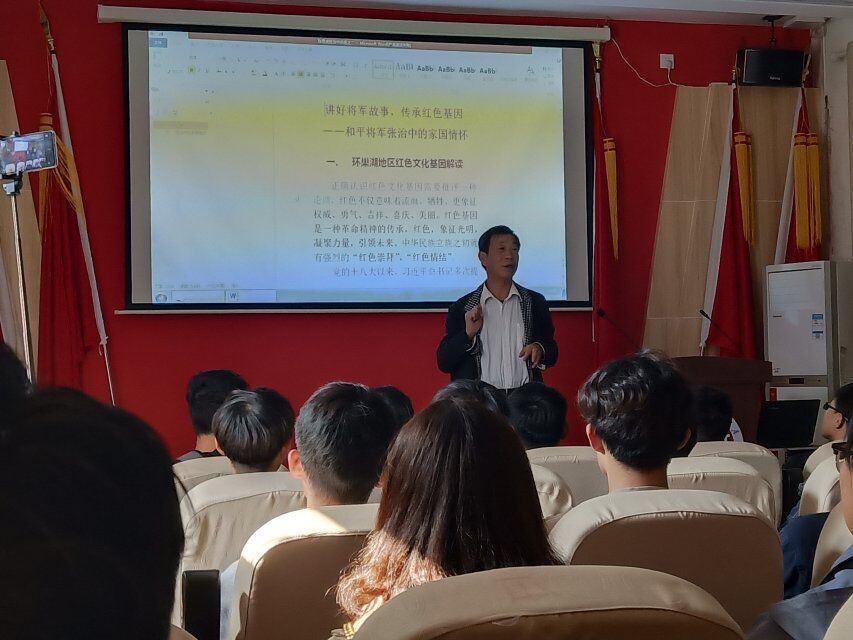 2019年10月23日下午2:00,《讲好将军故事,传承红色基因——和平将军张治中的家国情怀》红色主题讲座在巢湖市烔炀镇李克农故居电教室举办,由巢湖学院图书馆馆长陈恩虎主讲。安徽建筑大学城市建设学院的土木工程系学生党支部、预备党员、学生会成员和星空在线注册(中国)官方网站-注册登录积极分子四十余人参加了此次讲座。
