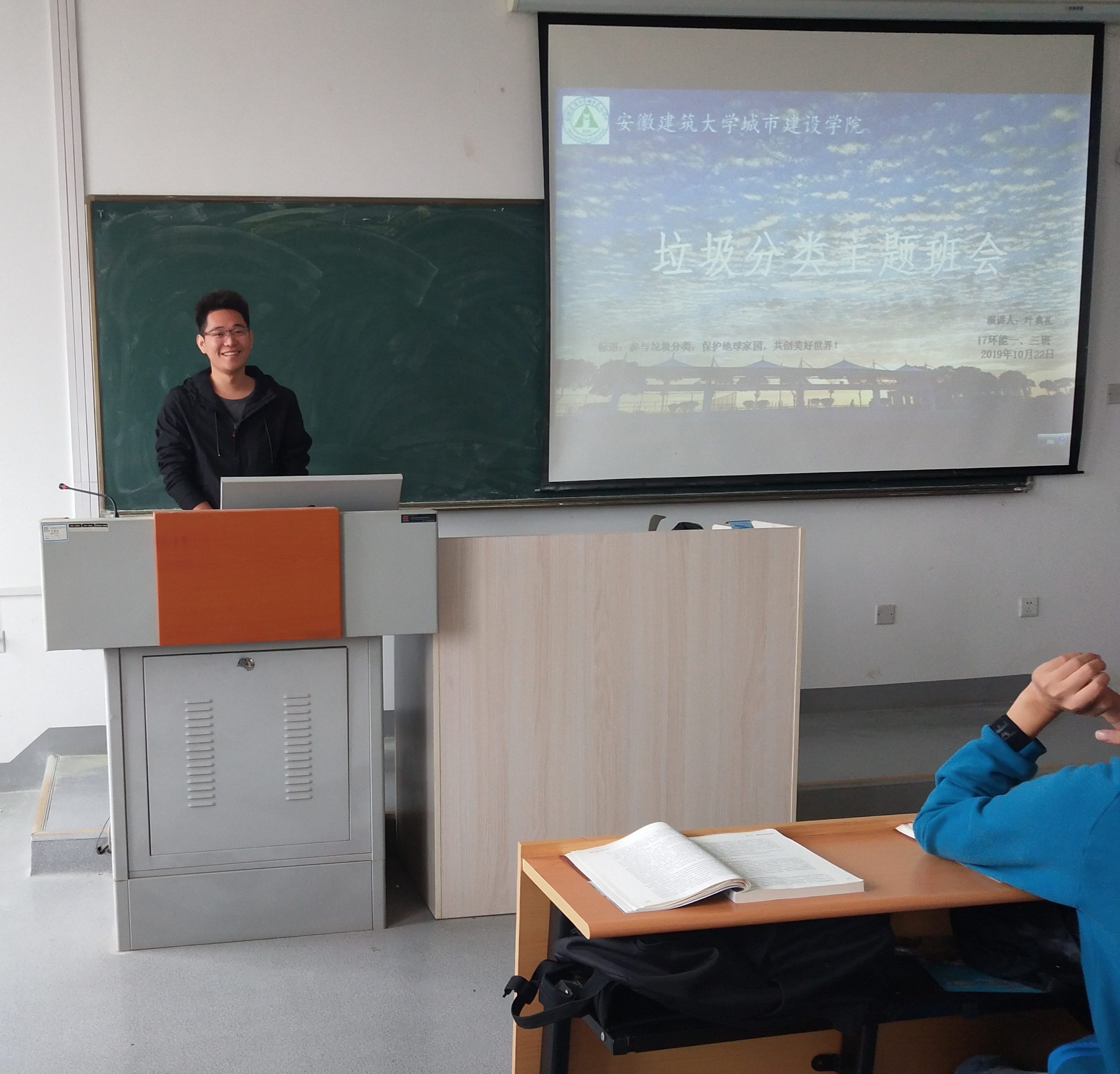 2019年10月22日,17级土木系环能一班与三班在南教402展开了“垃圾分类”的主题班会。本次班会的演讲者是环能三班叶典礼。本次演讲从什么是垃圾分类、垃圾处理的现状、垃圾分类的优点、如何进行垃圾分类以及垃圾分类小技巧五个方面对垃圾分类进行介绍。