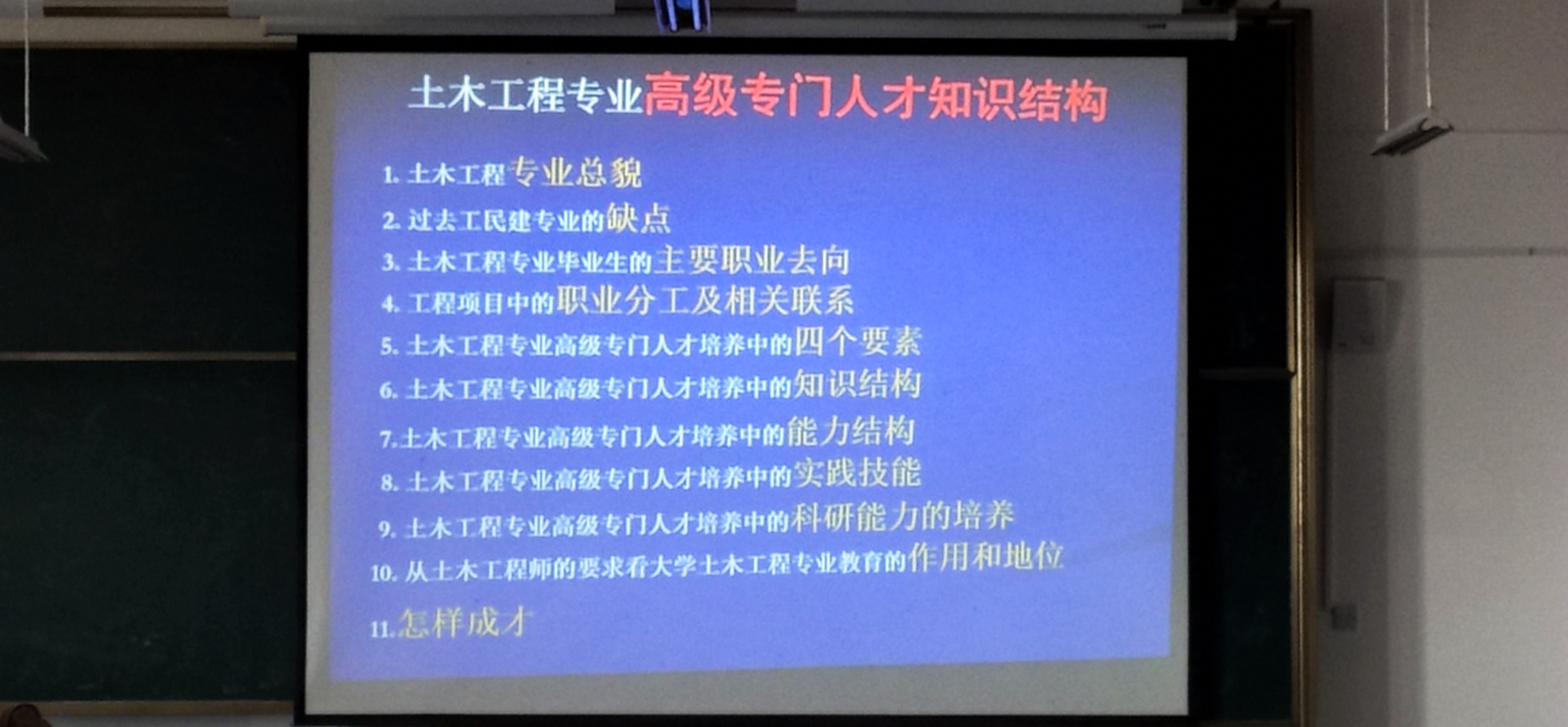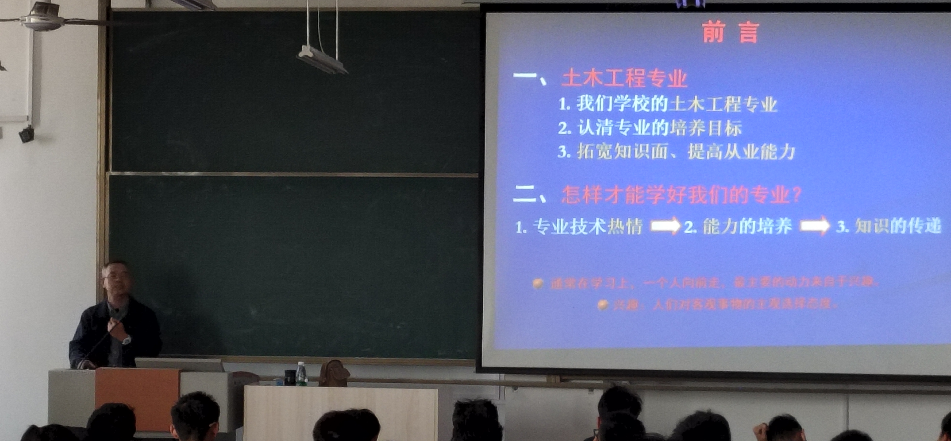 2019年11月7日安徽建筑大学城市建设学院土木工程系主办土木工程专业知识结构讲座,此次讲座主要目的是为土木工程专业的同学讲解相关知识结构。主讲人程晓杰老师通过PPT课件的方式为同学们直观地展示了本专业所要学习的内容和发展历程,并用自己的一些经历和见闻来鼓励大家积极学习。